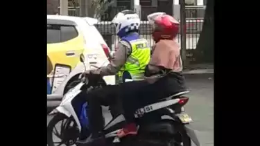 Tasikmalaya, tvOnenews.com - Seorang ibu muda pengendara sepeda motor tiba-tiba mengejar anggota kepolisian dari Satlantas Polres Tasikmalaya Kota yang sedang berpatroli di Jalan Letjend Mashudi, Kota Tasikmalaya. Usut punya usut, ternyata ibu muda tersebut tengah hamil dan ngidam ingin berkeliling dibonceng motor polisi.