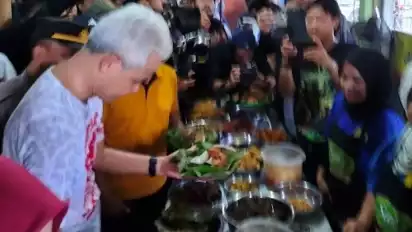 Cirebon, tvOnenews.com - Safari politik di Cirebon, Ganjar Pranowo akui ikan asin jambal roti Cirebon paling enak.