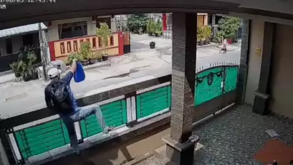Setelah merasa aman, satu orang pelaku yang menggunakan topi putih dan kaos berwarna biru langsung memanjat tembok dan masuk ke dalam rumah. Sementara pelaku lainnya mengawasi situasi dan menunggu di luar rumah. Usai beraksi, pelaku terlihat membawa satu tas ransel dan satu tas jinjing warna biru, kemudian kembali melompati pagar.