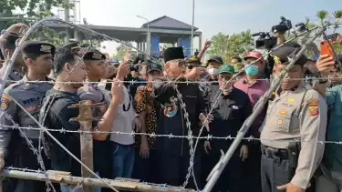 Di tengah aksi demo yang dijaga ketat oleh personel Polres Indramayu itu, Panji Gumilang memberanikan diri keluar menemui polisi dan meminta agar polisi berjaga di luar area pembatas mereka saja.