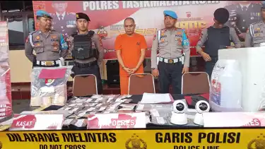 Seorang pria berinisial DD (36) diamankan Jajaran Satreskrim Polres Tasikmalaya Kota setelah nekat curi brankas berisi uang dan perhiasan total Rp1,5 miliar.