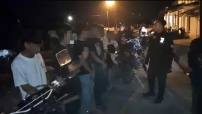 Tasikmalaya, Jawa Barat - Petugas kepolisian dari Tim Maung Galunggung Polres Tasikmalaya Kota, menggerebek puluhan remaja yang sedang pesta miras di Jalan Burujul, Kota Tasikmalaya, Minggu (30/7/2023) dini hari.