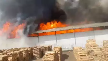 Kobaran api yang mebakar pabrik semakin membesar dalam waktu cepat karena banyaknya material yang mudah terbakar. Jilatan api juga menyebabkan atap pabrik ambruk. Sejumlah pekerja terlihat mencoba menyelamatkan kayu olahan dari dalam gudang yang belum terbakar.
