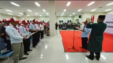 Indramayu, tvOnenews.com - Jelang HUT Republik Indonesia Ke 78, sebanyak 121 orang yang tergabung pada Negara Islam Indonesia (NII) anak buah Panji Gumilang melakukan pencabutan baiat dan ikrar setia NKRI di Embarkasi Haji Indramayu, Jawa Barat, Rabu malam (16/8/2023).