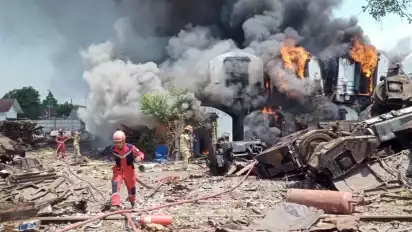 "Jadi sebenernya titik ke tiga, kita pekerja ada empat, tukang potong enam helpernya lima, kejadian jam sekitar 11 kita pemotongan, ada percikan api turun ke bawah, kita di posisi kedua, api ke bawah itu dalam jangka lima menit itu ada api," ujar Yanto kepada wartawan di lokasi kejadian.