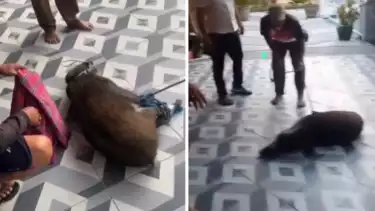 Babi tersebut diduga mengalami kelaparan akibat kondisi musim kemarau panjang serta kekeringan.