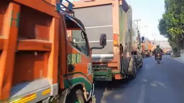 Bekasi, tvOnenews.com - Imbas dari kebakaran yang terjadi di Zona 2 Tempat Pengolahan Sampah Terpadu (TPST) Bantargebang, Kota Bekasi, antrean truk sampah DKI Jakarta mengular panjang. Pantauan tvOnenews.com, antrean mengular sekitar 1 kilometer.