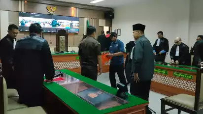 Indramayu, tvOnenews.com - Sidang lanjutan perkara kasus penistaan agama yang menjerat dedengkot Pondok Pesantren (Ponpes) Al Zaytun, Panji Gumilang, kembali digelar di Pengadilan Negeri (PN) Indramayu, Jawa Barat, Senin (27/11/2023).