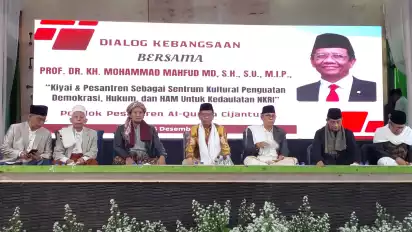 Mahfud MD Ikuti Dialog Kebangsaan Bersama Kiyai di Ponpes Cijantung Ciamis : Saya Siap Ikuti Debat Cawapres