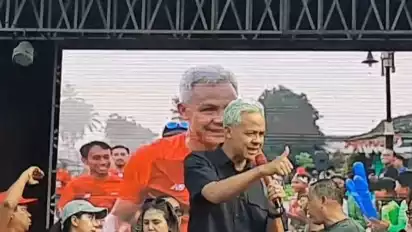 Bekasi, tvOnenews.com - Calon presiden (capres) nomor urut 3 Ganjar Pranowo menghadiri acara senam pagi bersama Komite Olahraga Rekreasi Masyarakat Indonesia (Kormi) Kota Bekasi di Alun-alun Kota Bekasi, Sabtu (16/12/2023).