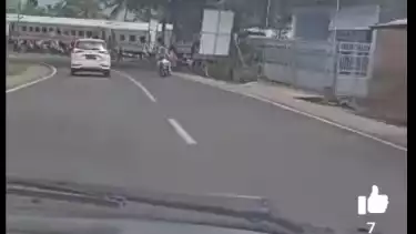 Dalam video yang diunggah oleh sebuah akun di Facebook tersebut, terlihat kereta api berhenti di palang pintu perlintasan dengan posisi gerbong agak miring, saat berada di tikungan.