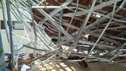 "Ini diduga penyebabnya karena bahan material yang menopang genteng tidak mampu menahan beban, sehingga ambruk, "katanya.