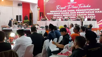 Bandung, tvOnenews.com - Penetapan hasil rekapitulasi tingkat Provinsi Jawa Barat kembali ditunda terhitung sejak Minggu malam (17/03/2024) hingga Senin pagi (18/03/2024).