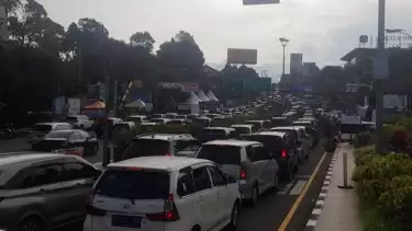 Meski terjadi antrean yang cukup panjang, namun tidak menyurutkan warga untuk tetap mendatangi destinasi wisata Puncak yang sejuk ini.