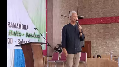 Bandung, tvOnenews.com- Calon Presiden (Capres) Nomor urut 3 Ganjar Pranowo hadiri acara halal bihalal yang digagas oleh relawan dan pendukungnya di Gedung Serbaguna Kota Bandung, Jawa Barat pada Rabu (17/04/2024).