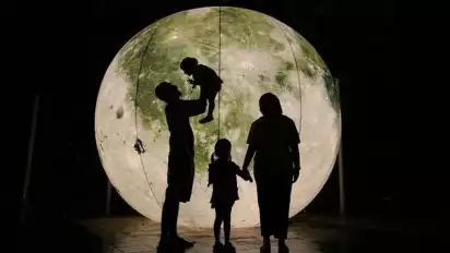 Hutan Menyala menggunakan hiasan lampu LED dan video mapping sehingga menciptakan efek penuh warna.