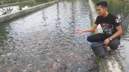 "Saya bawa pekerja l, ga mungkin sendiri, kan kalo saya dinas kolam yang urus pasti pekerja. Saya tanami bibit nila misalnya, biasanya 50 Kg untuk satu kolam, saya untuk tahun ini ada 6 kolam yang sewa kepada masyarakat," tambah Gilang.