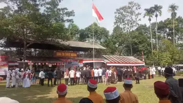 Tasikmalaya, tvOnenews.com - Ratusan masyarakat dari berbagai kalangan merayakan Hari Ulang Tahun (HUT) ke-79 Republik Indonesia dengan mengikuti upacara bendera di Taman Rekreasi Batu Ampar Galunggung, Kabupaten Tasikmalaya, pada Sabtu (17/08/2024).