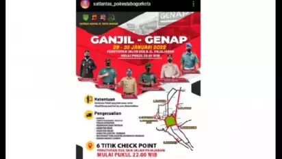 Jakarta - Seiring meningkatnya kasus Covid-19 di Indonesia dan Provinsi Jawa Barat, Polresta Bogor Kota bersama Satgas Covid-19 Kota Bogor kembali akan memberlakukan Sistem Ganjil Genap pada akhir pekan ini, yakni mulai hari Sabtu dan Minggu tanggal 29-30 Januari 2022.