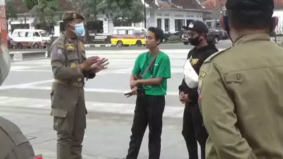 Kabupaten Sumedang, Jawa Barat - Puluhan warga Sumedang, Jawa barat yang kedapatan tidak menerapkan protokol kesehatan (prokes) tidak menggunakan masker, terjaring razia penegakan hukum dan disiplin di seputaran Alun-Alun Sumedang, Selasa (15/2/22).