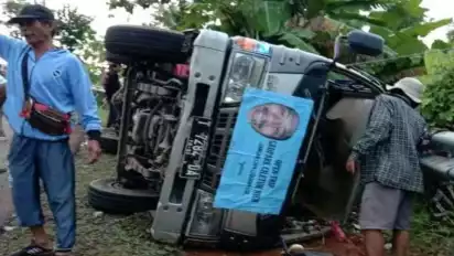 Sebuah Kendaraan Travel Mikrobus Terguling di Sukabumi, Satu Orang Meninggal Dunia