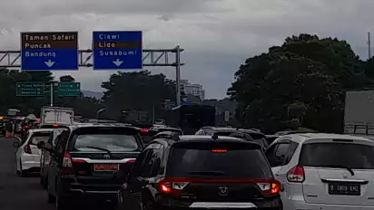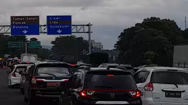 Arus lalu lintas dari arah Jakarta terpantau kembali mengalami peningkatan volume kendaraan. Antrean kendaraan yang didominasi pelat B terlihat saat akan memasuki gerbang tol Ciawi sepanjang sekitar 3 kilometer dari Pertigaan Gadog sampai Rest Area Tol Ciawi.