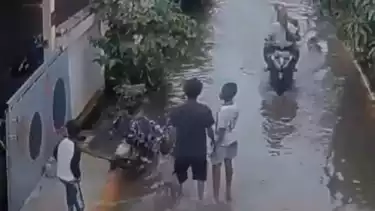 Aksi tersebut terekam cctv hingga viral di media sosial. Dalam video yang beredar, terlihat FY menenteng AF dari dalam rumah. Kemudian dia berjalan ke jalanan yang sedang digenangi banjir