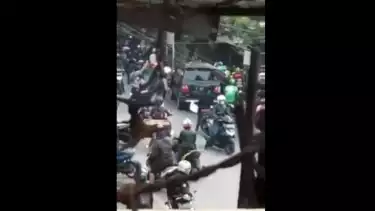 Di tengah kepungan warga itu, pengemudi Kijang lalu memundurkan kendaraannya dengan kecepatan tinggi sehingga menabrak dan melindas beberapa motor, kemudian berhenti. Lalu sejumlah warga kembali memukuli mobil itu dengan helm.