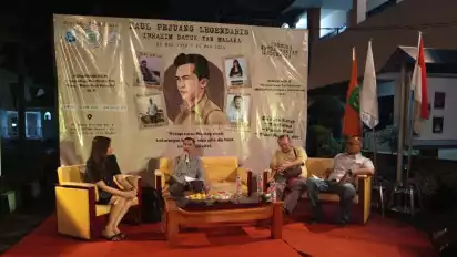 tvOnenews.com - Pagelaran diskusi Publik dan Haul Tan Malaka Bapak Republik Pejuang Legendaris Indonesia kembali diselenggarakan di Kampus Universitas Islam '45 (UNISMA Bekasi) Kali Ini Bertajuk "Haul ke-76 Tahun Ibrahim Datuk Tan Malaka sang Pejuang Legendaris".