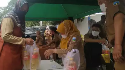 Garut, Jawa Barat - Langkanya minyak goreng di masyarakat Garut, masih dirasakan hingga hari ini. Meski ada, harga di pasaran pun menjadi tak wajar. Untuk itu, Dinas Ketahanan Pangan (DKP) Garut, hari ini, senin (7/3/2022) menggelar bazar minyak goreng satu harga, dengan mematok harga Rp 14 ribu per liter bagi para konsumen.