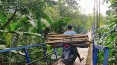 "Jembatan gantung itu, saat ini kondisinya memprihatinkan karena landasannya menggunakan kayu yang setiap bulan harus diganti karena lapuk terkena hujan dan panas. Bahkan setiap pekan, warga harus menyiapkan landasan kayu yang patah karena terlindas sepeda motor dengan beban berat," katanya.