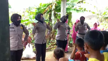 Sukabumi, Jawa Barat - Polisi Wanita (Polwan) Polres Sukabumi berikan trauma healing kepada anak yang terdampak angin puting beliung di Nagrak Utara, Kabupaten Sukabumi, Kamis (10/03/2022).