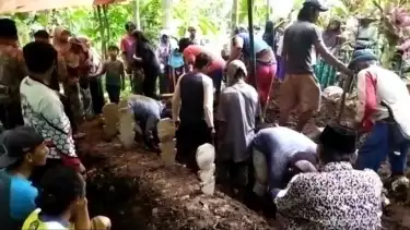 Pangandaran, Jawa Barat - HA (8) dan HU (8) dua anak lelaki kembar yang meninggal dunia akibat ditabrak rombongan motor gede alias moge di jalan raya Tunggilis, Pangandaran, Jawa Barat, pada Sabtu petang (12/3/2022), langsung dimakamkan di area pemakaman keluarga di Karangsari. Keduanya dimakamkan bersama dalam satu liang lahat. Curahan hujan dan ratusan warga serta tetangga korban mengiringi pemakaman anak kembar yang masih duduk dibangku kelas 2 SD Negeri 3 Tunggilis itu.