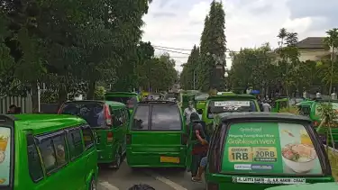Sukabumi, Jawa Barat - Sedikitnya 431 angkutan umum trayek 08 jurusan Cisaat-Kota Sukabumi melakukan aksi mogok operasi. Perwakilan Ratusan sopir angkot tersebut melakukan aksi unjuk rasa di depan gedung Dewan Perwakilan Rakyat Daerah (DPRD), Jalan Ir. Djuanda, Kecamatan Cikole, Kota Sukabumi.