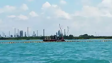 "Pemasangan oil boom untuk melindungi area pantai Balongan Indah. Hal itu kita lakukan untuk menjaga ceceran tidak meluas dan ekosistem yang ada di laut tetap terjaga. Kita sudah melakukan penyedotan dan kita tarik. Kami juga besok akan berkomunikasi dengan warga. Untuk kedalam pipa yang bocor di bagian bawah laut yang jelas bukan korosi. Kami masih melakukan pengecekan lebih lanjut, Tim bawah air kita sudah berangkatkan untuk lakukan perbaikan." tambah Fahrougi.