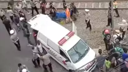 Kejadian tersebut pun menjadi tontonan warga yang melintas. Tampak juga pihak kepolisian sudah ada di lokasi kejadian saat video tersebut diunggah.