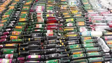 Kabupaten Sukabumi, Jawa Barat - Ribuan botol minuman keras berbagai merek hasil sitaan Satuan Narkoba Polres Sukabumi di musnahkan jelang Ramadhan, Jumat (1/4/2022).