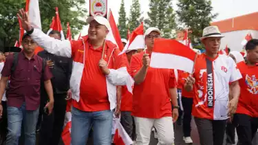Jakarta, tvOnenews.com - Bupati Bogor, Rudy Susmanto, bersama ribuan masyarakat melakukan kirab bendera merah putih dari Stadion Pakansari menuju Pendopo Bupati Bogor pada Kamis (14/8/2025).