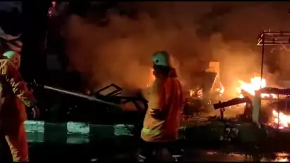 Dugaan sementara, kebakaran yang menghanguskan beberapa kios semi permanen disebabkan pembakaran sampah.