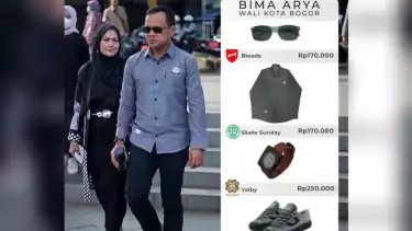 Ia tampak memakai kacamata hitam seharga 170 ribu, kemeja abu-abu seharga 170 ribu, jam tangan harga 250 ribu, dan sepatu tali seharga 215 ribu. Tak hanya Bima Arya, dalam foto itu juga menampilkan gaya berpakaian Wakil Wali Kota Bogor Dedi A. Rachim, Kepala Satpol PP Bogor Agustian Syach, dan ASN lain. (syf/mii)