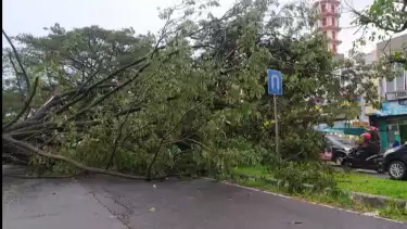 "Pas angin kencang, langsung roboh. Itu juga pohon sudah tua, harusnya kan pohon besar begini kalau di pinggir jalan musim hujan gini ditebang saja," ujarnya saat ditemui di lokasi.
