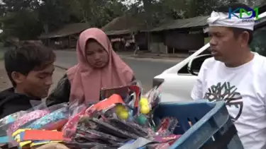 "Belum ada uang pak, ini juga belum punya kerjaan tetap, ini juga menjualkan mainan orang lain, dan dari jualan ini saya dapat Rp 100 per biji, kalau mainannya kejual," kata si laki-laki.