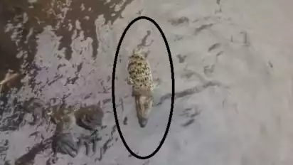 Dani Hamdani Polhut BKSDA Jawa Barat mengatakan, buaya yang ditemukan ini diperkirakan jenis muara dengan usia tiga tahun. Saat terlihat pada bagian mulut terdapat lakban berwarna hitam.
