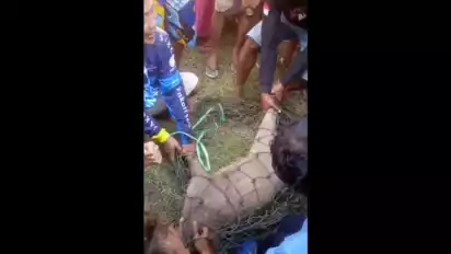 Puluhan pedagang dan warga sekitar ramai-ramai mengejar dan mencoba menangkap babi hutan yang mengamuk. Meski ada banyak orang yang berpartisipasi menangkap babi hutan yang nyasar itu, namun mereka kesulitan lantaran babi hutan berbobot besar dan beringas. Babi hutan yang mengamuk akhirnya bisa ditangkap oleh seorang warga dengan menggunakan jaring untuk menangkap ikan.