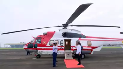 Jakarta - Presiden Joko Widodo bertolak ke Subang, Jawa Barat, dari Pangkalan TNI AU Atang Sendjaja, Bogor, menaiki helikopter NAS-332 Super Puma Skuadron Udara 45 TNI AU, Selasa (12/7/2022).