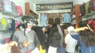 Sejak pasar dibuka pagi hari, sejumlah warga sudah menyerbu toko tersebut. Para pembeli membeli peralatan sekolah seperti baju sekolah SD, SMP dan SMA.