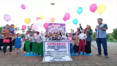 Deklarasi Hari Anak Nasional dengan tema "Stop Kekerasan terhadap Anak Penerus Bangsa" ini, diwarnai dengan pelepasan balon usai pembacaan deklarasi yang diikuti pula oleh orang tua siswa.