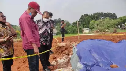 Depok, Jawa Barat - Inspektor Jenderal Kementerian Sosial RI, Dadang Iskandar, mendatangi lokasi 'kuburan' Bansos di kawasan Sukmajaya, Selasa (2/8/2022).