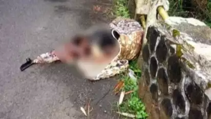 Garut, Jawa Barat - Mayat terbungkus selimut dan terlilit kabel dengan kondisi bersimbah darah ditemukan di pinggir Jalan Raya Cisewu Garut.