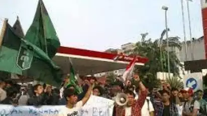 Kuningan, Jabar - Sejumlah mahasiswa Himpunan Mahasiswa Islam (HMI) Kabupaten Kuningan melakukan aksi unjuk rasa menuntut adanya penundaan kenaikan harga Bahan Bakar Minyak (BBM) bersubsidi di halaman Gedung DPRD Kuningan, Selasa (30/08/2022).